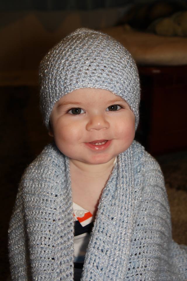 Here is one happy little man still enjoying his blanket!