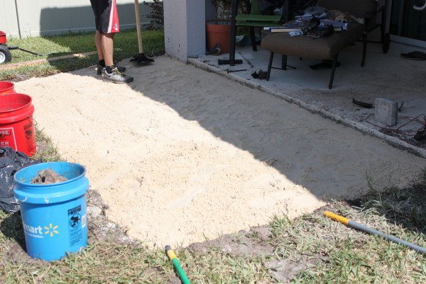 Below is a picture of about 4 inches of dirt dug out...2-3 more inches to go! We put the dog to work and had him digging as well.