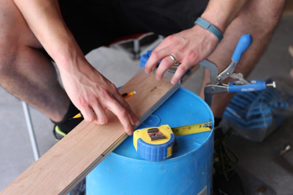 First, you start out by measuring the wood, you need exact measurements in order for your piece to sit flush on the floor. We noticed the slightest bit it was off, it would cause the whole piece to become un-level. So obtaining the exact measurements from the instructions was a very important key element in the overall construction.