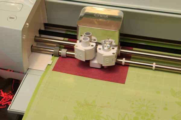 Next, it was time to start cutting. I placed my 5 x 5 iron on (glitter-side down) on my Cricut mat. On the Cricut, I selected "Custom" and then selected "mirror" image in the Design program before cutting. Once it was selected it gave me an option of what material to chose, I selected "Iron on glitter," I then loaded the mat into the machine and I watched my creation come to life!